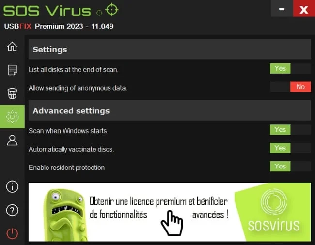 The settings are very simple, including the option to list all disks after the scanning process. The pro version offers auto-scanning at the startup of Windows and the time of inserting a disk.